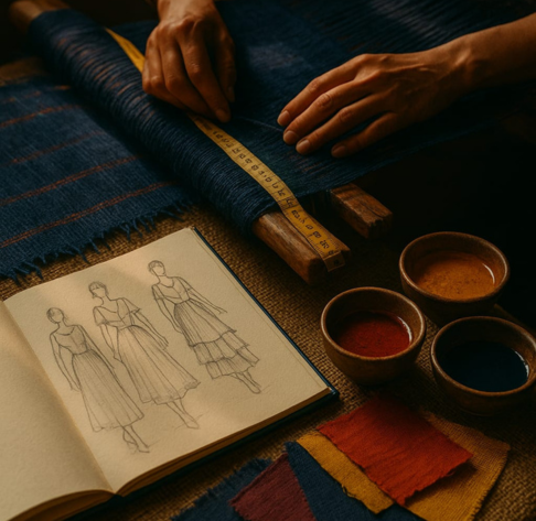 Rooted in India’s timeless textile traditions and driven by a bold vision for the future, we stand at the intersection of craft, consciousness, and creativity.